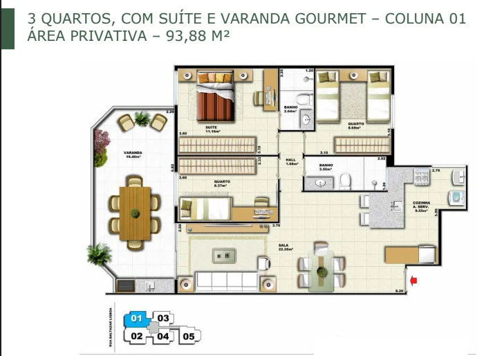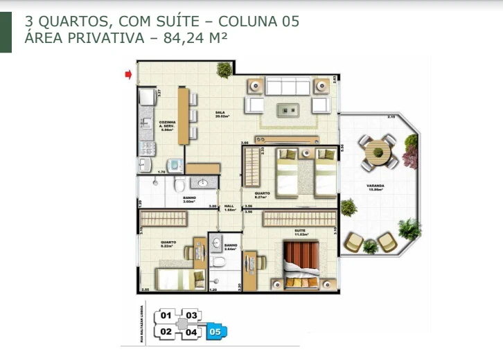 Apartamentos de 3 quartos com 84m² até 93m²